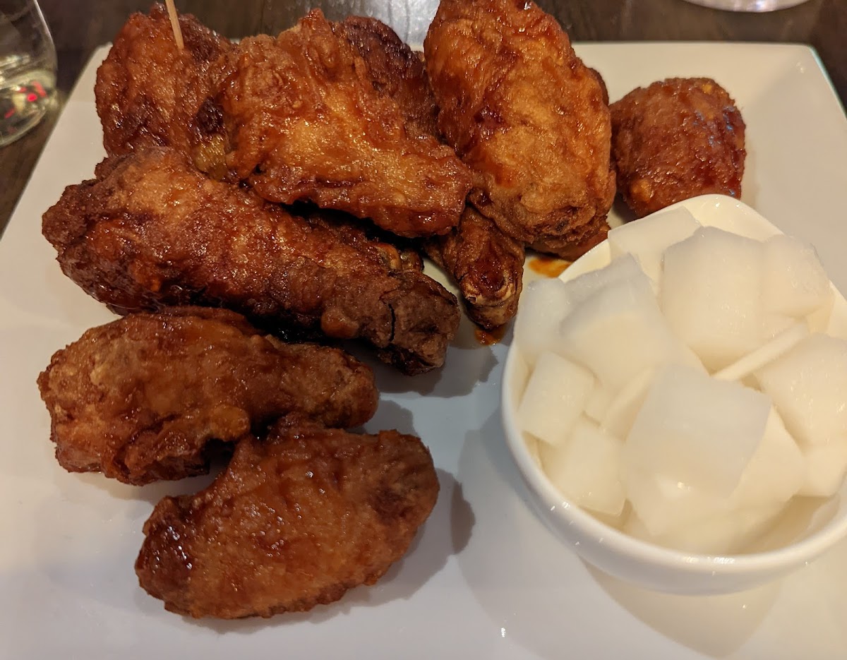 The menu goes beyond chicken, which is something I didn’t fully appreciate on my first visit. Alongside wings and drumsticks, you’ll find bibimbap bowls, japchae noodles, and Korean tacos that work well for sharing. I once brought a group of coworkers who weren’t all chicken fans, and the variety made it easy for everyone to find something. The pickled radish served on the side isn’t just a garnish either; it’s there to cleanse your palate, a traditional pairing rooted in Korean dining culture and backed by food science showing that acidic sides balance fatty foods.